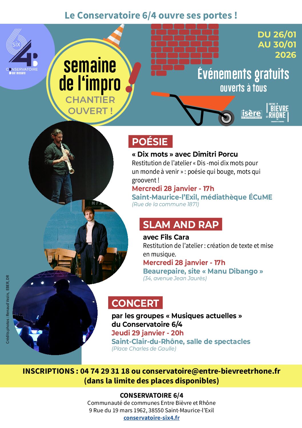 Gratuit – Sur inscription auprès du Conservatoire 6/4 jusqu’au 21/01 (dans la limite des places disponibles) :